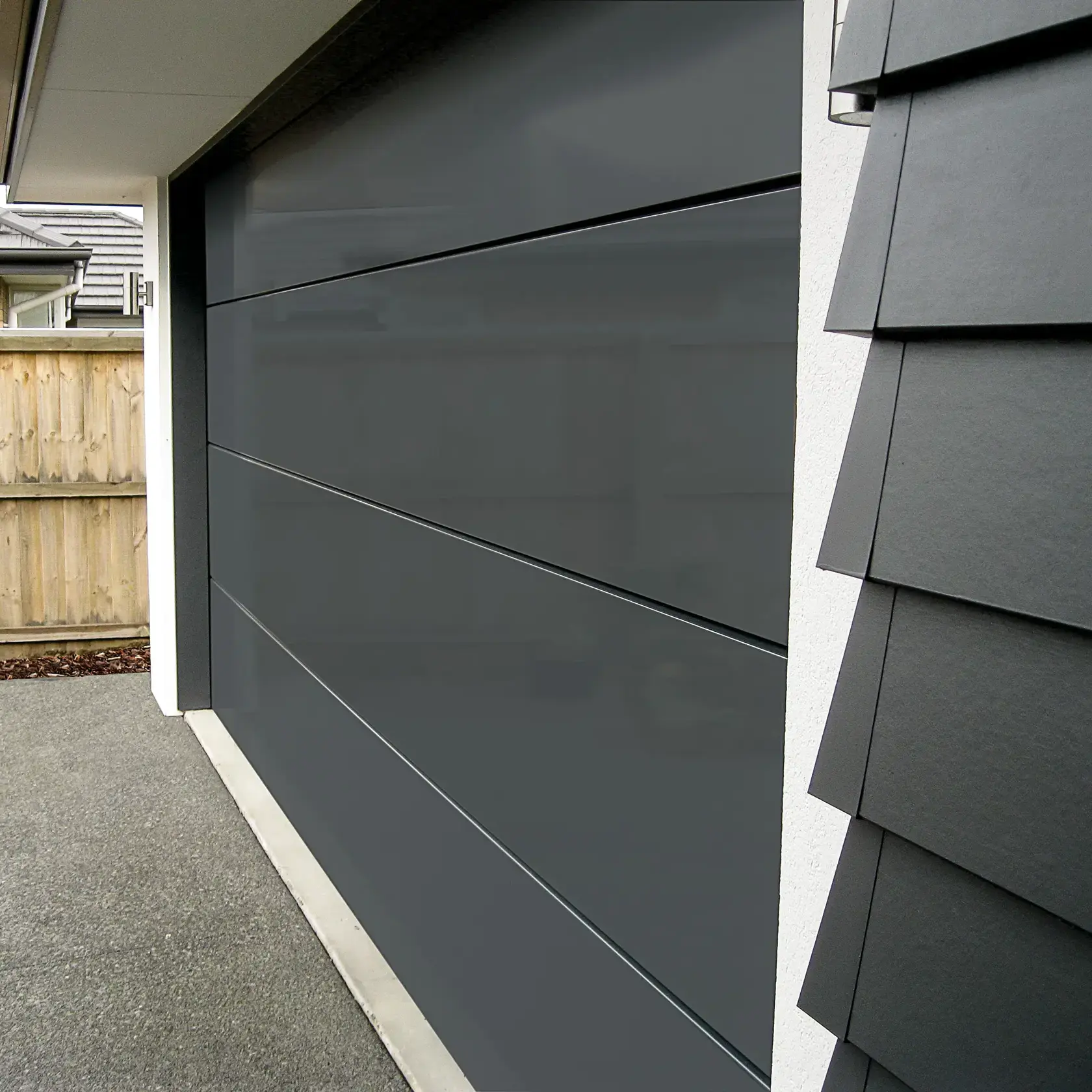 All our Dominator® garage doors are clad in NZ Colorsteel®, and are available In a wide range or Colorsteel® colours, as well as a huge variety of Dulux® Powder Coat colours. We also offer a wide range of custom doors which can be clad in Cedar and other wood products, as well as ACM (Aluminium Composite Material) and other claddings.